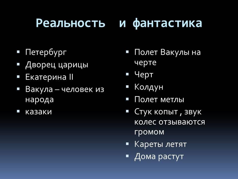 Ответ: таблица фантастика и реальность по произведению "ночь перед рождеством"