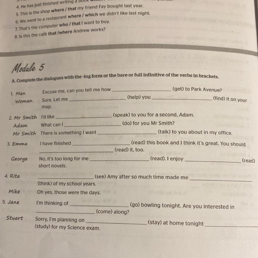 getting, helping, finding, speaking, doing, talking, reading, reading, reading, seeing, thinking, coming, staying, studying