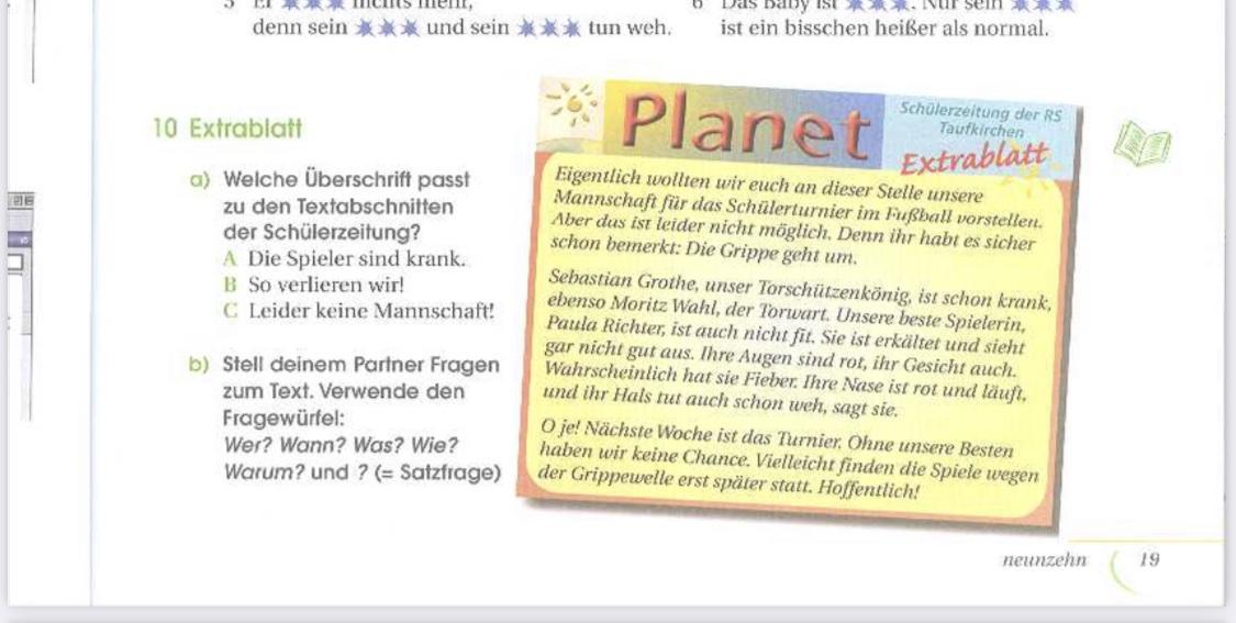 Die Schüler möchten in diesem Extrablatt über ______________ berichten.