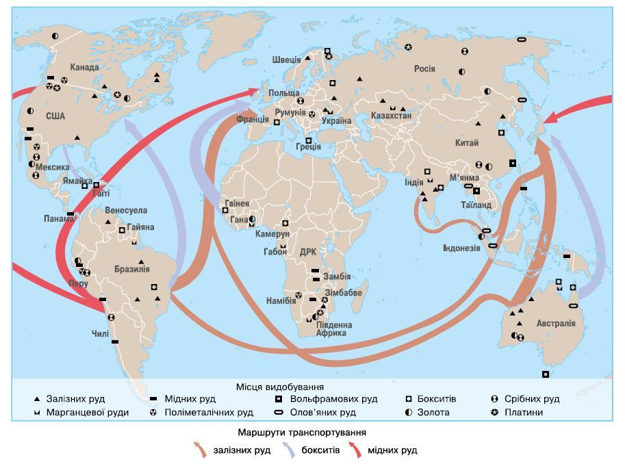 - Видобуток золота проводиться в Китаї, Австралії, ПАР, Росії, США.