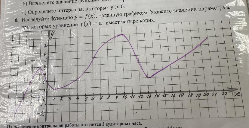 Исследуйте функцию у = f (х), заданную графиком. Укажите значения параметра а, при которых уравнение f (х) = а имеет четыре корня.Помогите пж!