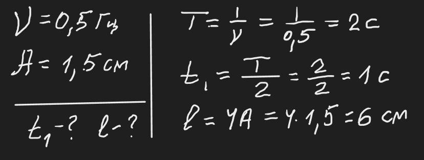 вантаж на пружині здійснює вільні коливання з частотою 0,5 Гц і амплітудою 1,5 см. Через який проміжок часу він проходить через положення рівноваги Який шлях пройде вантаж за одне повне коливання