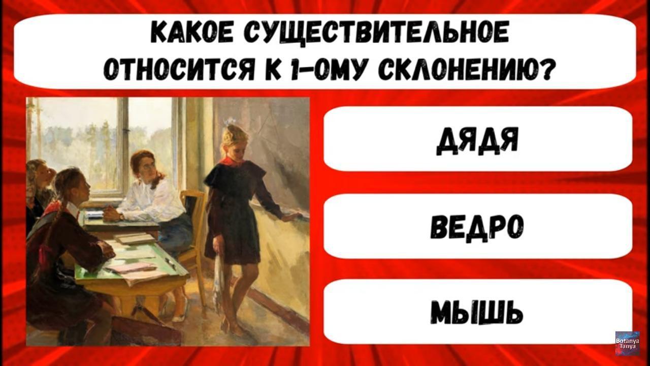 КАКОЕ СУЩЕСТВИТЕЛЬНОЕ ОТНОСИТСЯ К 1-ОМУ СКЛОНЕНИЮ? дядя ВЕДРО МЫШЬ Botany Tanya