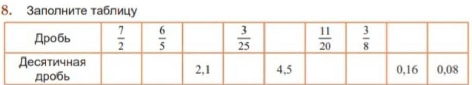 Дробь: 7,2, 6,5 3,25 11,20, 3,8