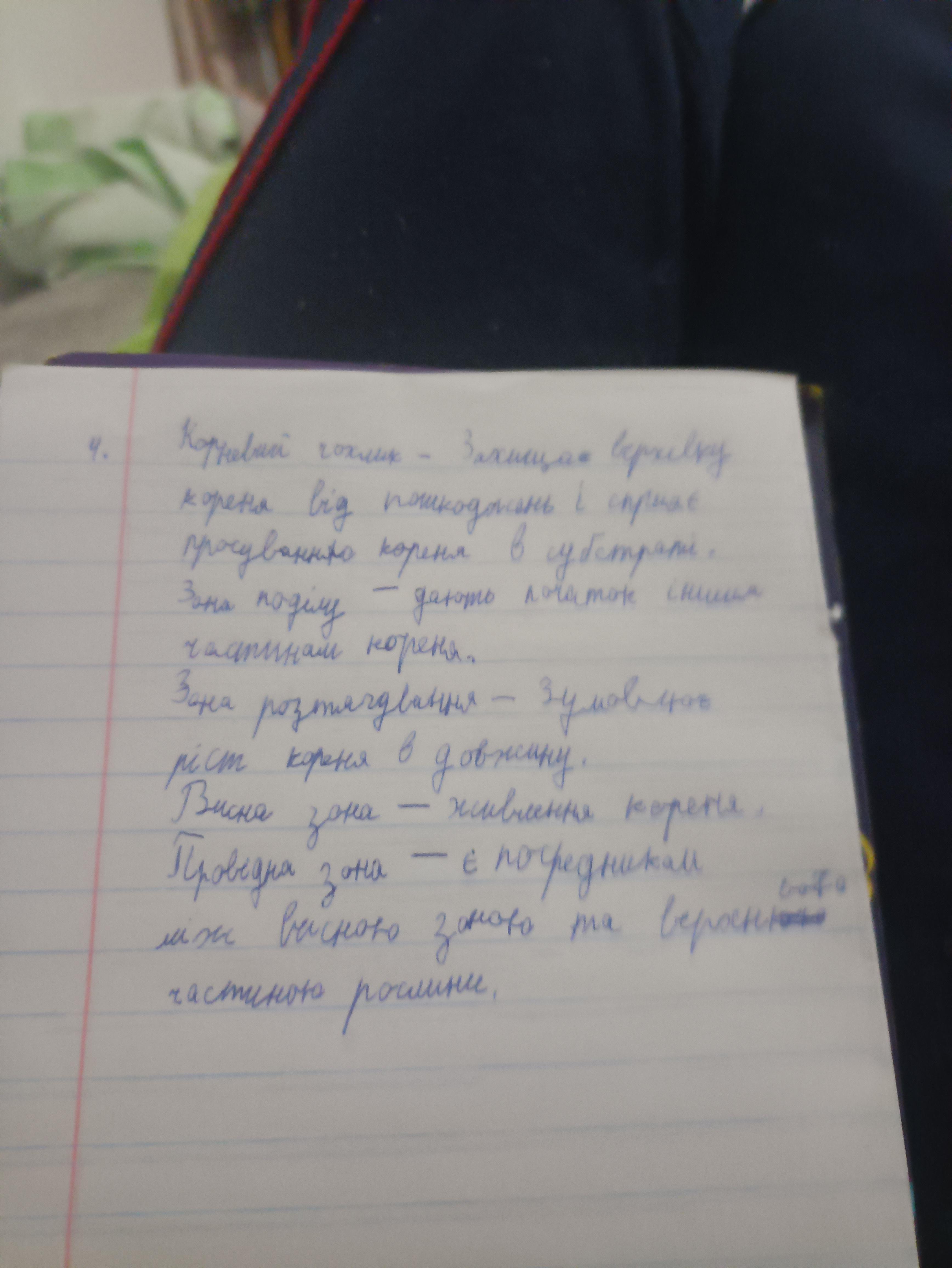 4. ЗаповНИ таблицю. Якщо необхідно, звернись до тексту на с. 48. Зона кореня Кореневий ЧОХЛИК Зона поділу Зона розтягування (росту) Всисна зона (зона кореневих волосків) Провідна зона (зона бічних коренів) Функці