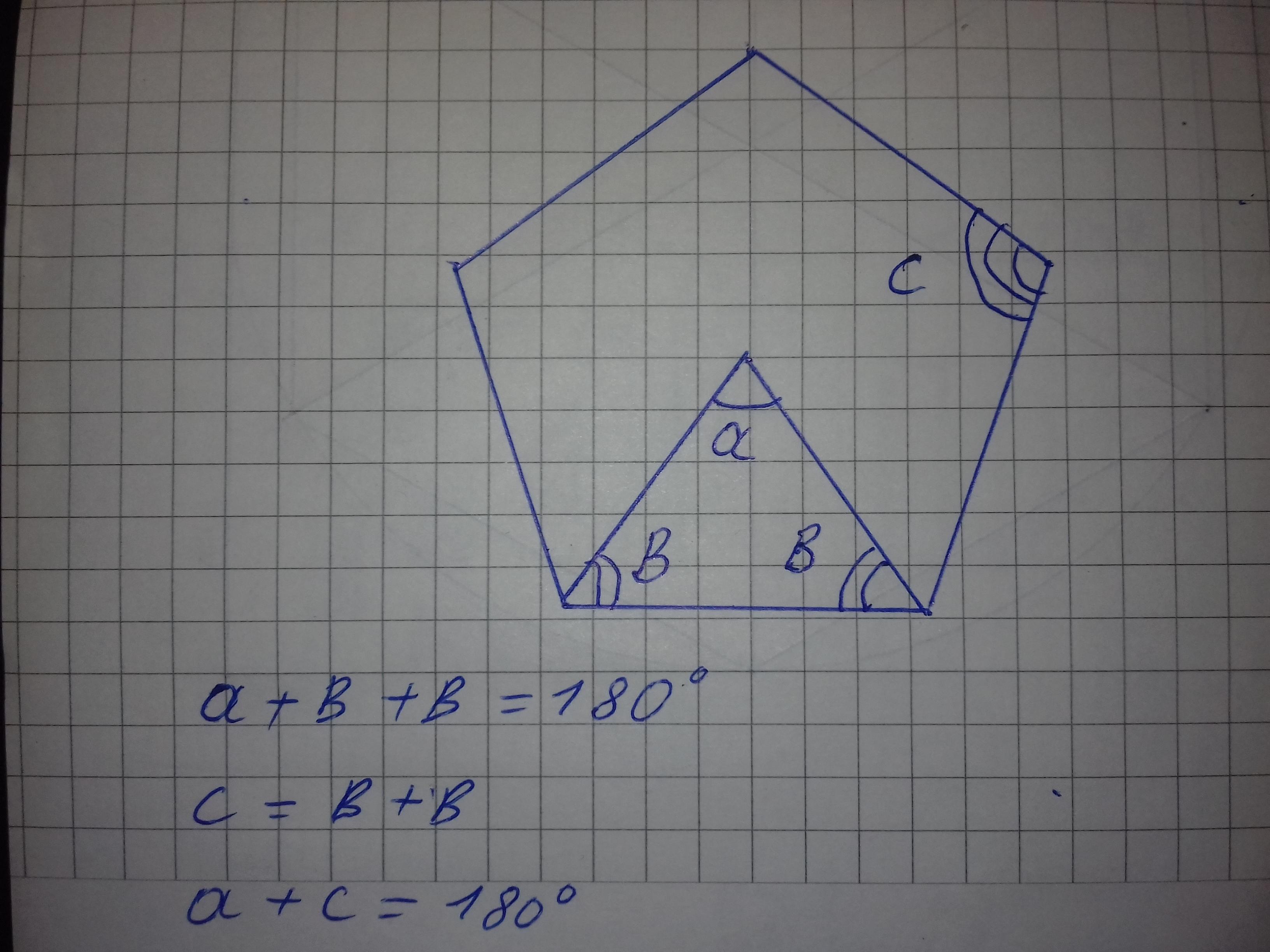 В правильном многоугольнике сумма центрального угла и внутреннего угла равна 180°.