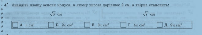 Радіус основи становить R = √(L²-H²) = √(7-4) = √3.