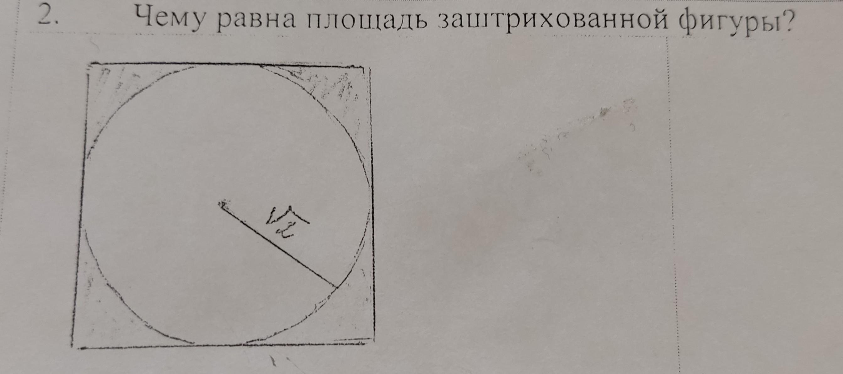 чтобы найти площадь заштрихованной фигуры ,надо от площади квадрата отнять площадь круга