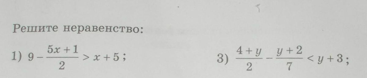 а) 9-(5х+1)/2>х+5 б) (4+у)/2-(у+2)/7<у+3