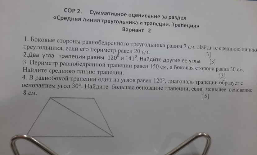 СОР по геометрии за 2 четверть, помогите пожалуйста.