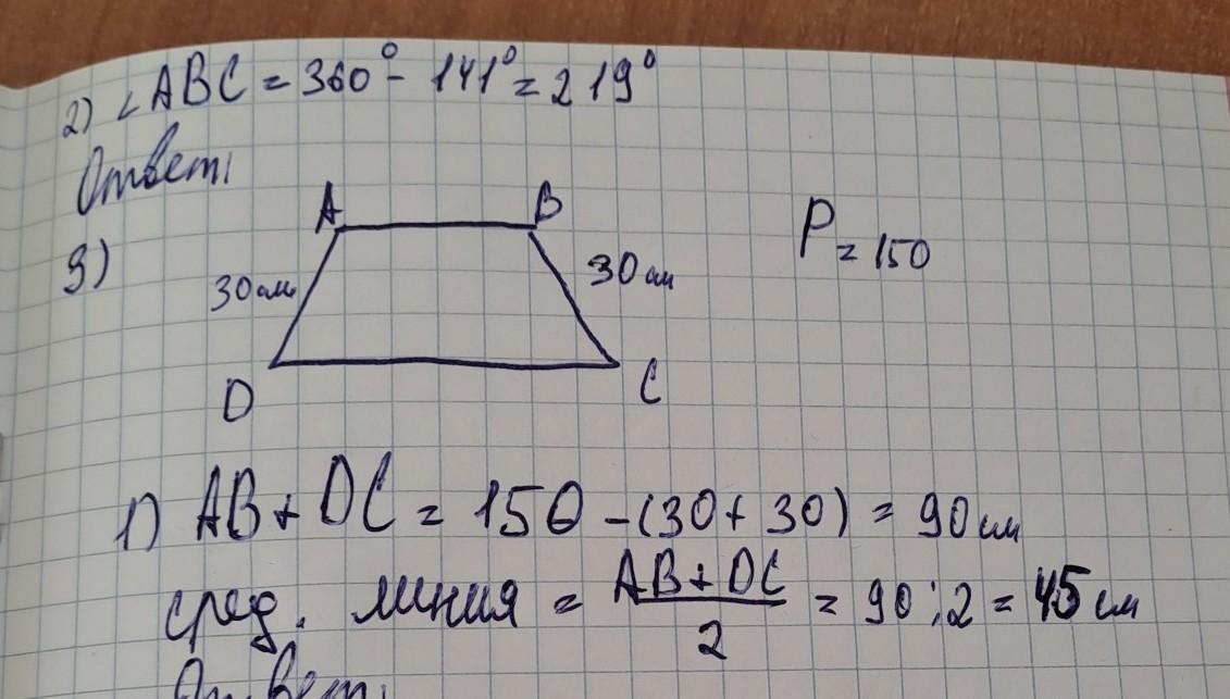 2. Два угла трапеции равны 120° и 141°. Найдите другие ее углы.