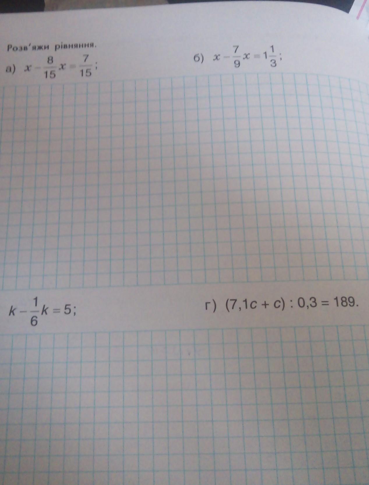 a) x - 8/15x = 7/15