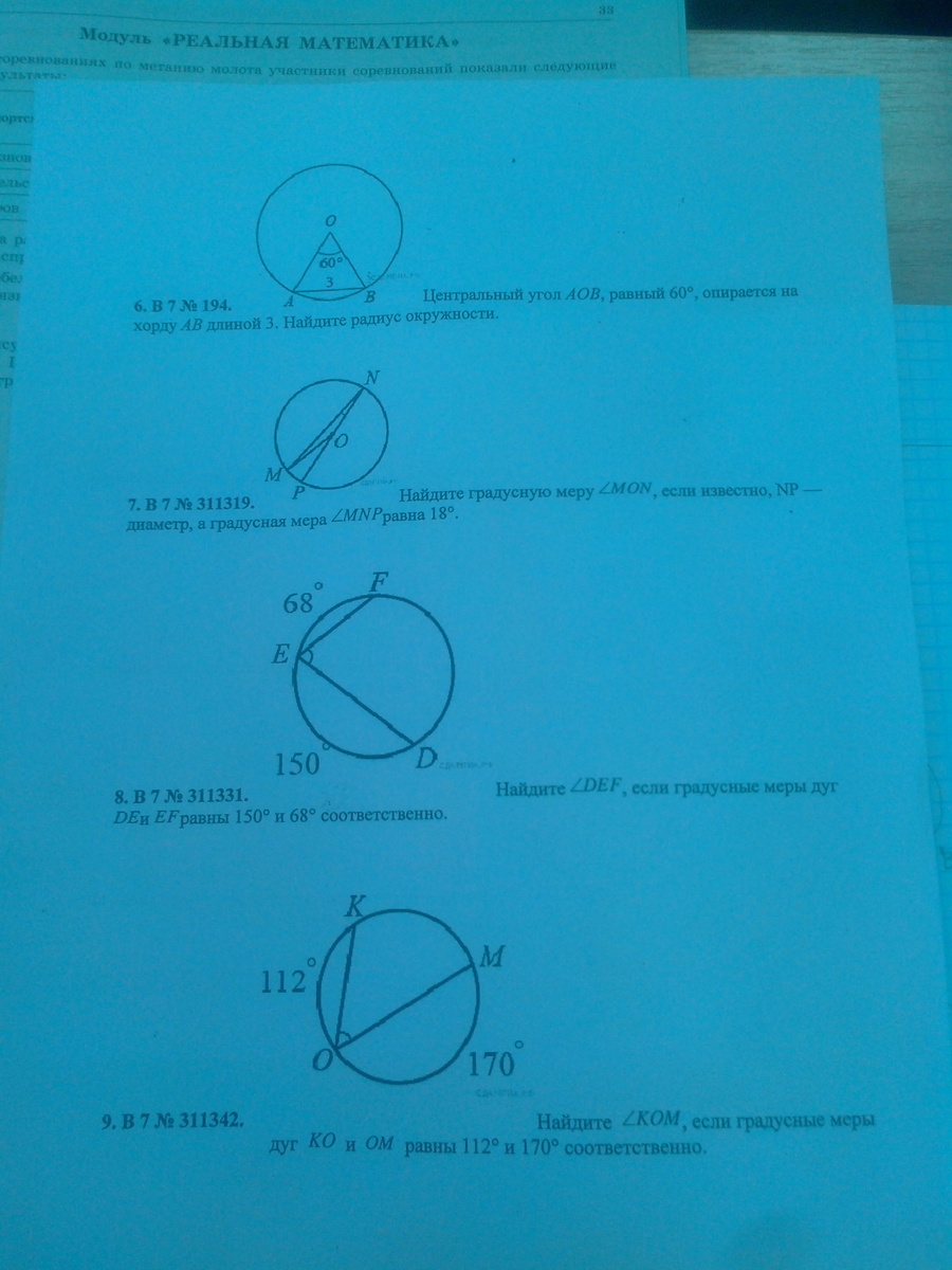 Угол МОН=144 градуса т.к. ON=OM. Видим равнобедренный треугольник с одинаковыми углами при основании. Соответственно находим угол МОН=180-18*2=144 градуса.