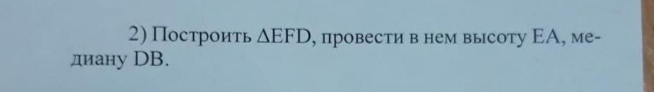 Построить треугольник EFD, провести в нем высоту EA, медиану DB