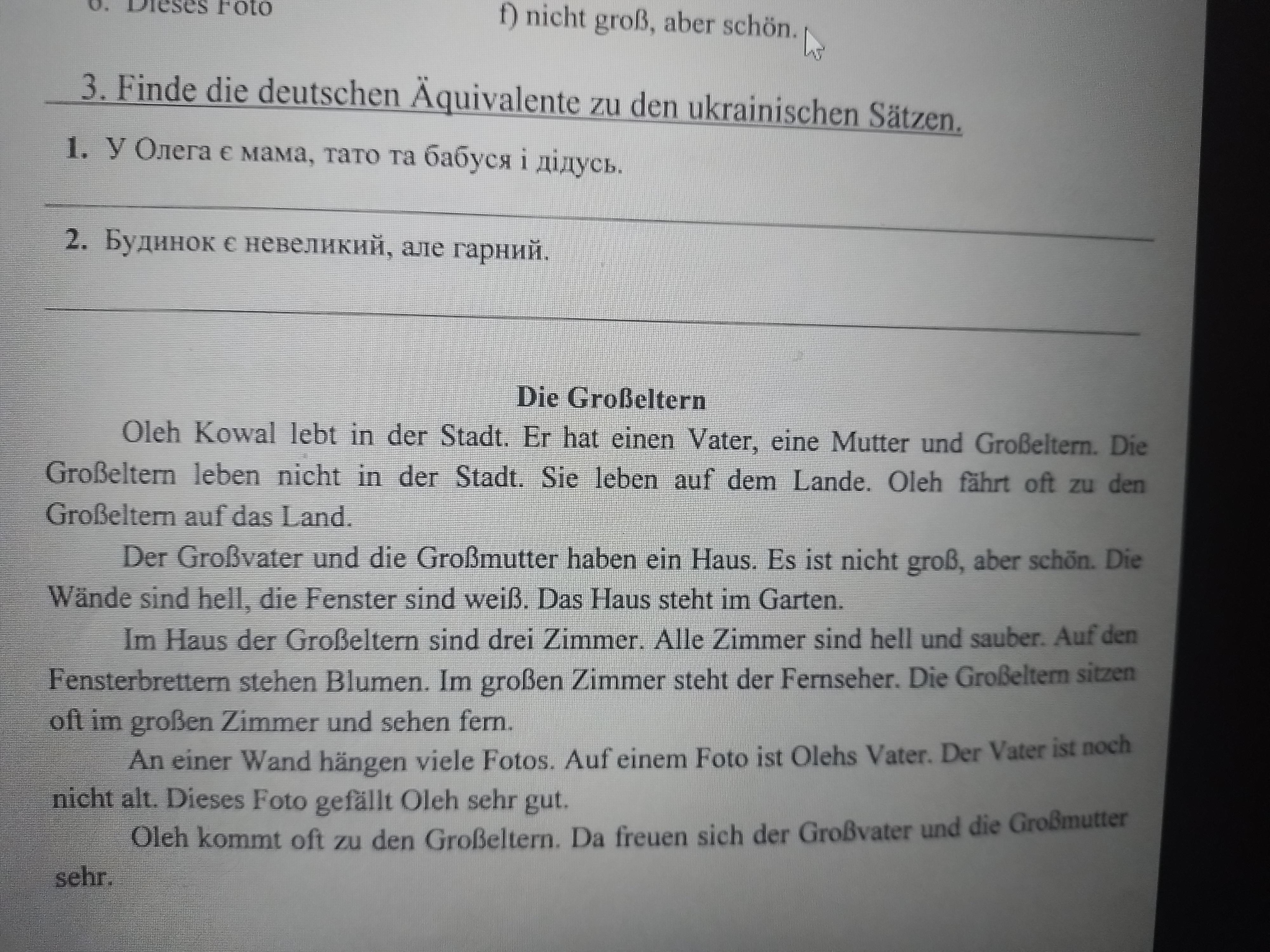 1. Oleh hat eine Mutter, einen Vater und Großeltern.