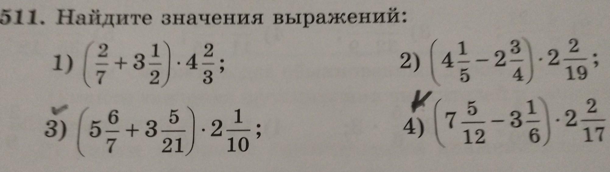 511. Найдите значения выражений: +3 6 350-31-2101 3) 5 +3 2) 4) 7 5 12 3. 2- 19 2. 17.