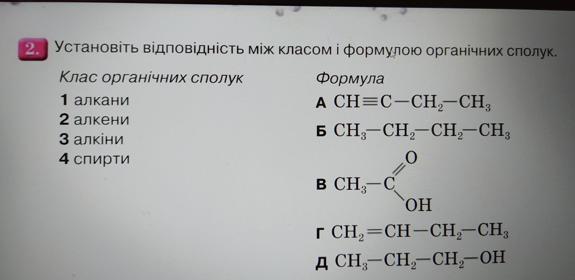 Установіть відповідність між класом і формулою органічних сполук. Клас органічних сполук Формула
