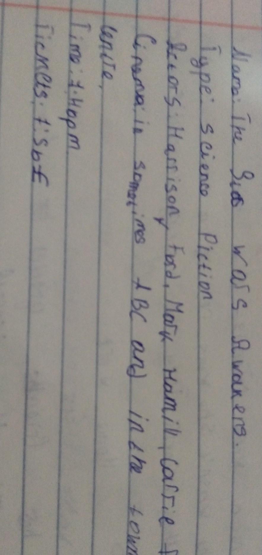 Акторс: Harrison Ford Mark Hamill, carrie fisher. 2in sometimes ABS and in the town centre