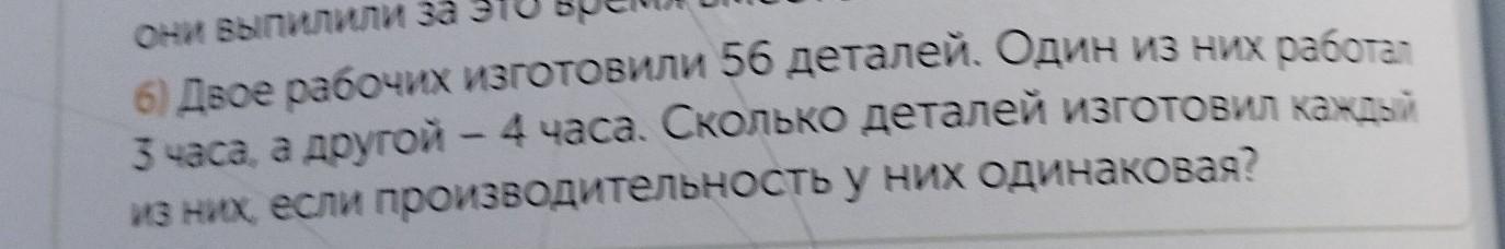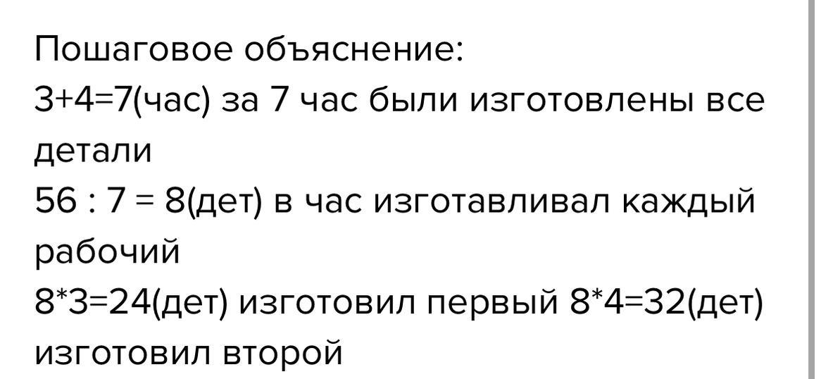 Двое рабочих изготовили 56 деталей. Один из них работ 4 часа. Сколько деталей изготовил ка у них одинаковая?