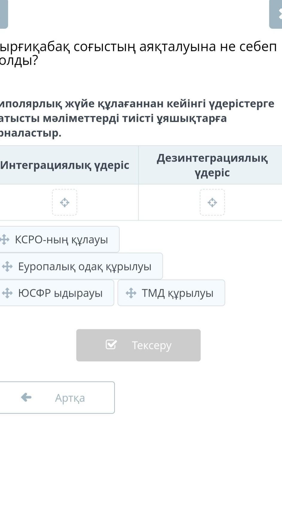 Биполярлық жүйе құлағаннан кейінгі үдерістерге қатысты мәліметтерді тиісті ұяшықтарға орналастыр.