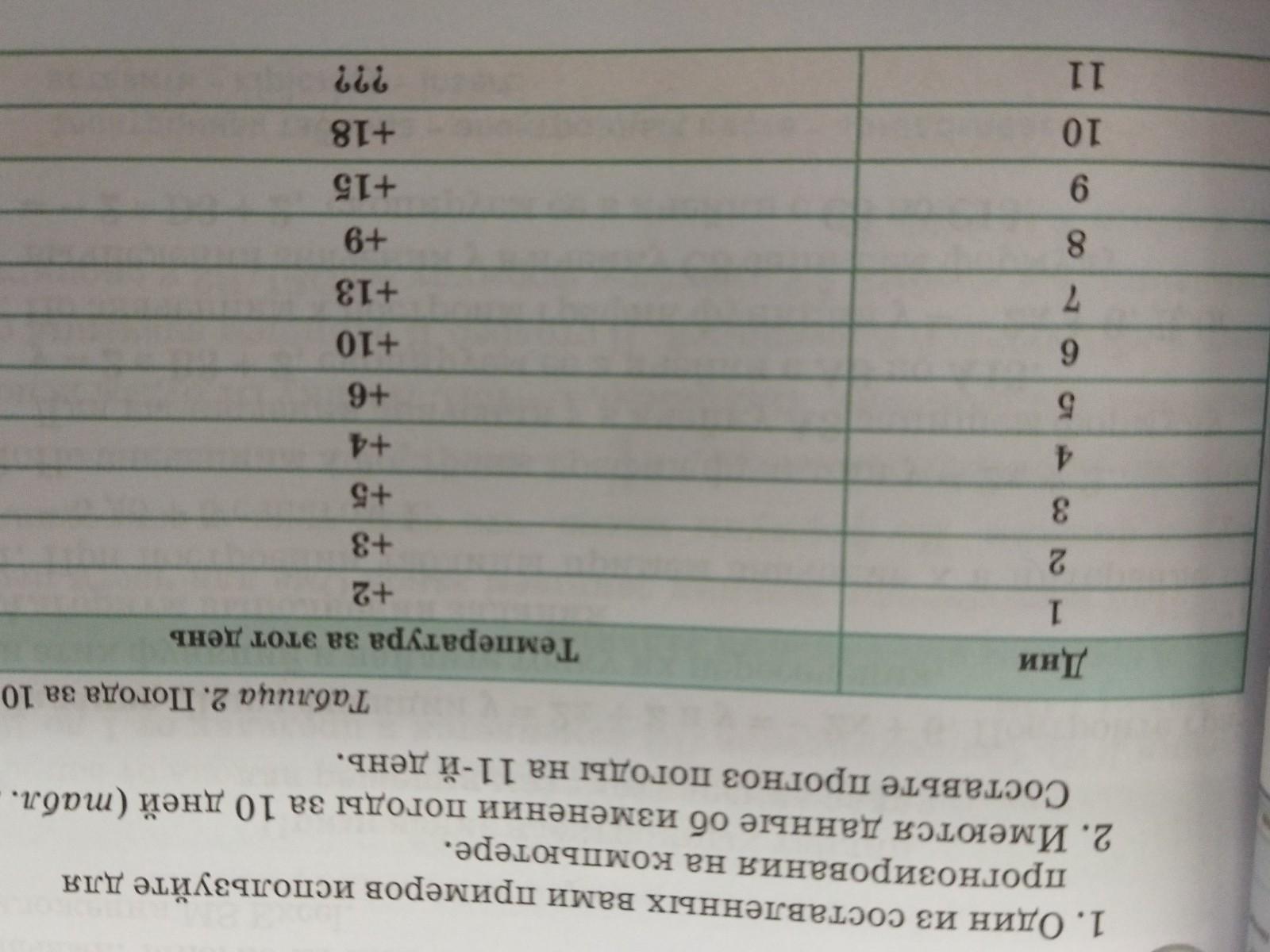 Домашнее задание 1. Один из составленных вами примеров используйте для на компьютере. прогнозирования 2. Имеются данные об изменении погоды за 10 дней (табл. 2). Составьте прогноз погоды на 11-й день.