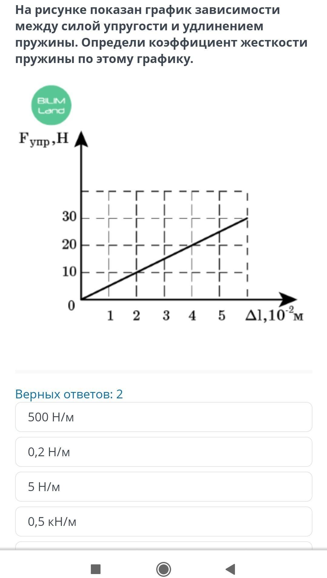 Лабораторная работа №4 «Изучение упругих деформаций» На рисунке показан график зависимости между силой упругости и удлинением пружины. Определи коэффициент жесткости пружины по этому графику. BILIM Land Fymp,H 30 20 10 0 -г-г-г-г- -+-+ T – A1 10-2