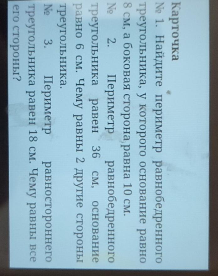 1. Периметр = 28 см 2. 2 другие стороны = 15 см 3. Стороны = 6 см