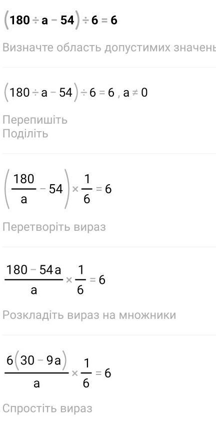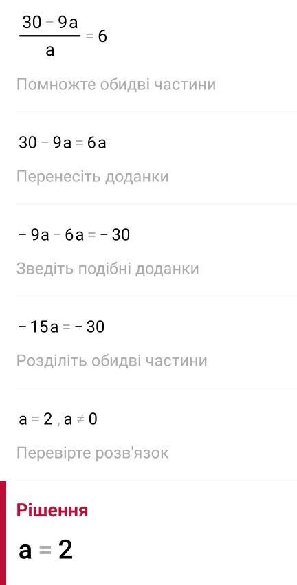 6(30-9a)/a • 1/6 = 6 (скорочуємо дві 6)