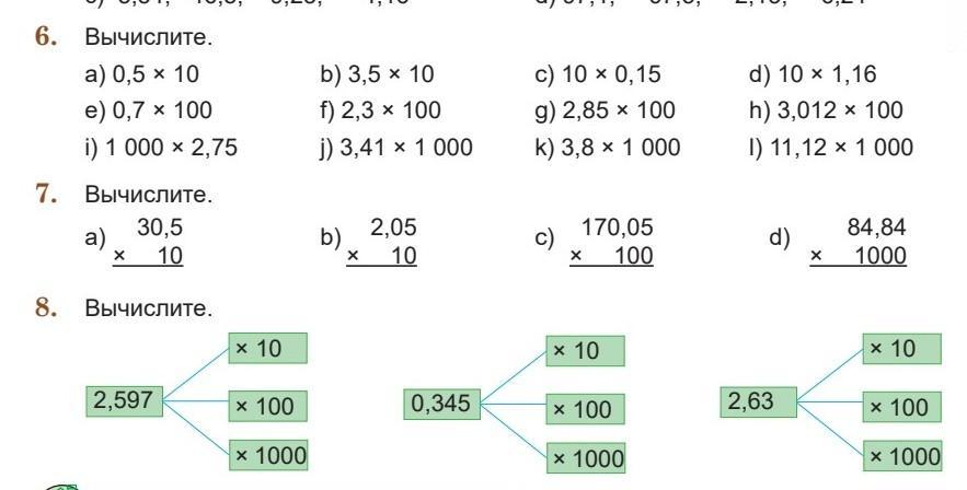 0,5×10=50, 0,7×100=700, 1000×2,75=275.000, 3,5×10=350, 2,3×100=2300, 3,41×1000=341.000, 10×0,5=150, 2,85×100=285.00, 3,8×1000=38.000, 10×1,16=1160, 3,012×100=301.200, 11,12×1000=11,12000