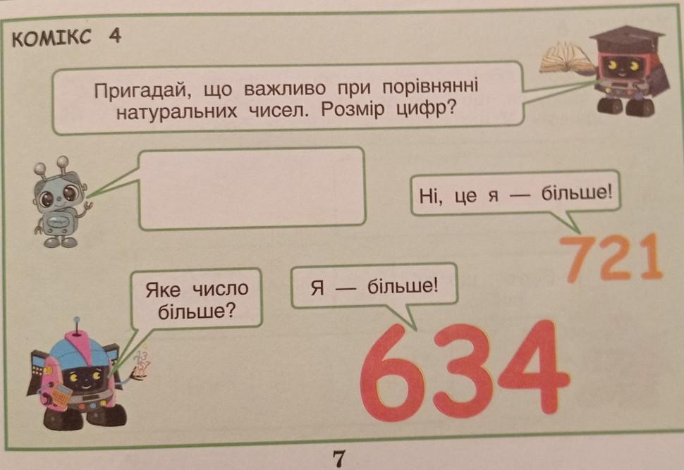 Числа 634 і 721 трицифрові, але 721 більше, ніж 634