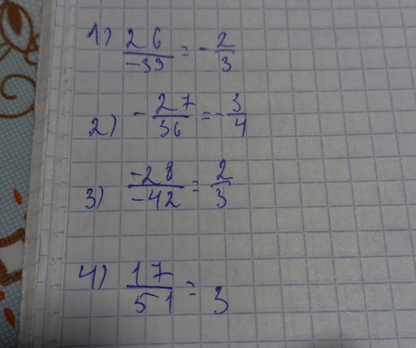Помогите скратите так чтобы знаментель был положительный 1) 26/-39 2) -27/36 3) -28/-42 4) 17/51 пжпжпжпжпжпжппжпжпжжпжпжпжпжпжпжпжпж