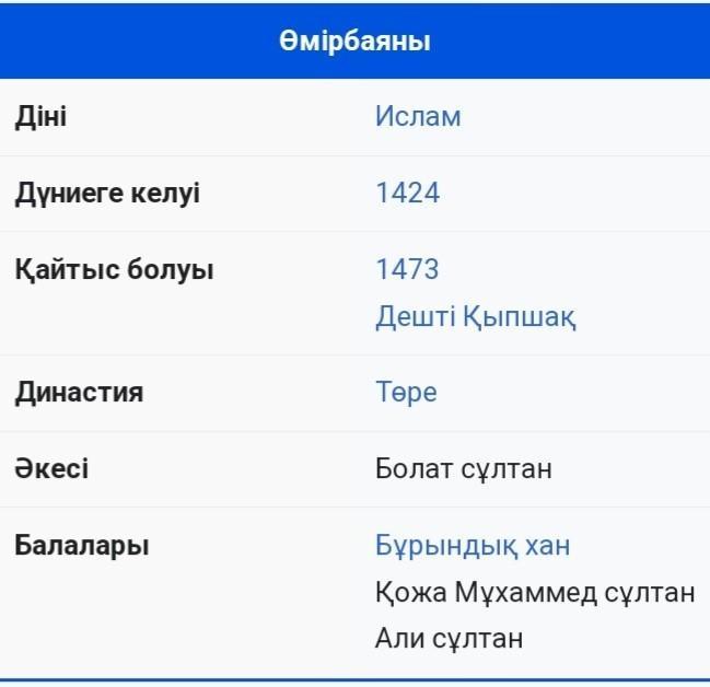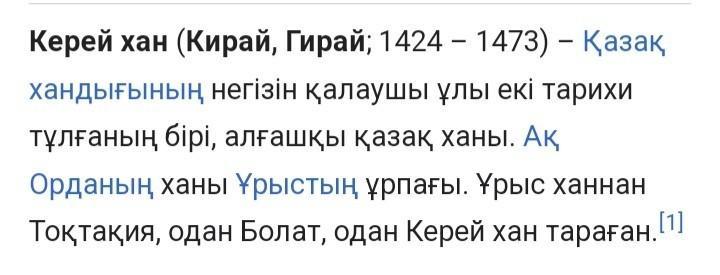 Керей Хан 1424жылы дүниеге келген және 1473жылы дүниеден өткен. діні Ислам. Әкесі Болат Сұлтан. Керей хан Қазақ хандығының негізін қалаушы. Ол алғашқы қазақ ханы.