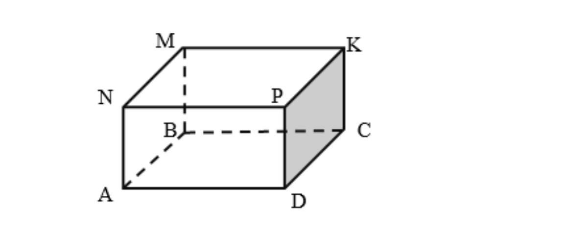 Знайдіть об’єм прямокутного паралелепіпеда (див. мал.), якщо площа грані ABCD дорівнює 12 см 2 , площа грані BCКМ – 6см 2 , а довжина спільного ребра BC дорівнює 2 см