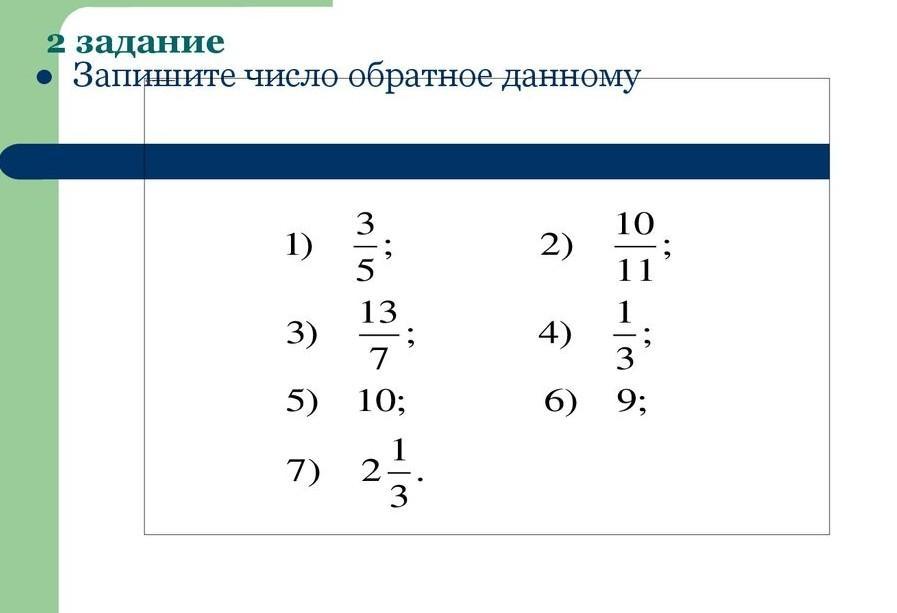 Числа a/b и b/a называются взаимно обратными. Их произведение равно 1 (a/b * b/a = 1).