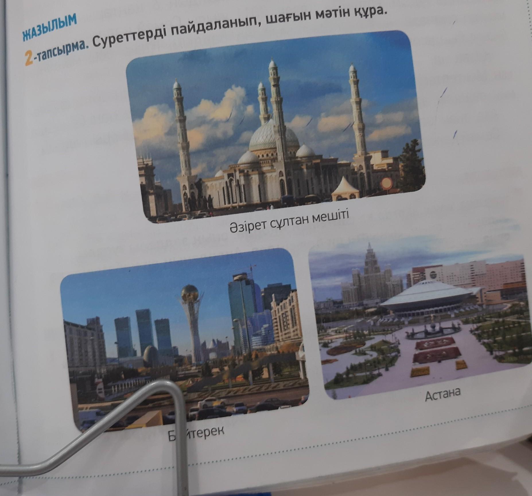 ЖАЗЫЛЫМ 2-тапсырма. Суреттерді пайдаланып, шағын мәтін құра. Б Tepek AFFEE Әзірет сұлтан мешіті НА en Астана 103