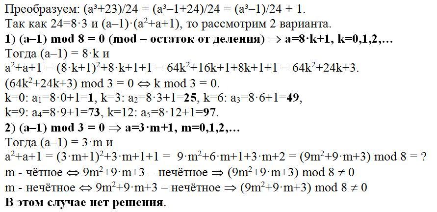 Из последнего выражения видно, что при a = 1, 25, 49, 73, 97 получим натуральные числа 1, 652, 4903, 16210, 38029.