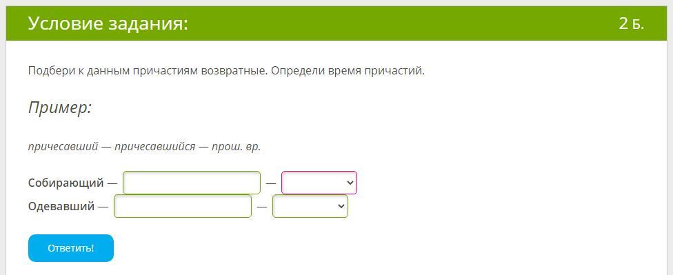 Подберите к данным причастиям возвратные. Определите время причастий.