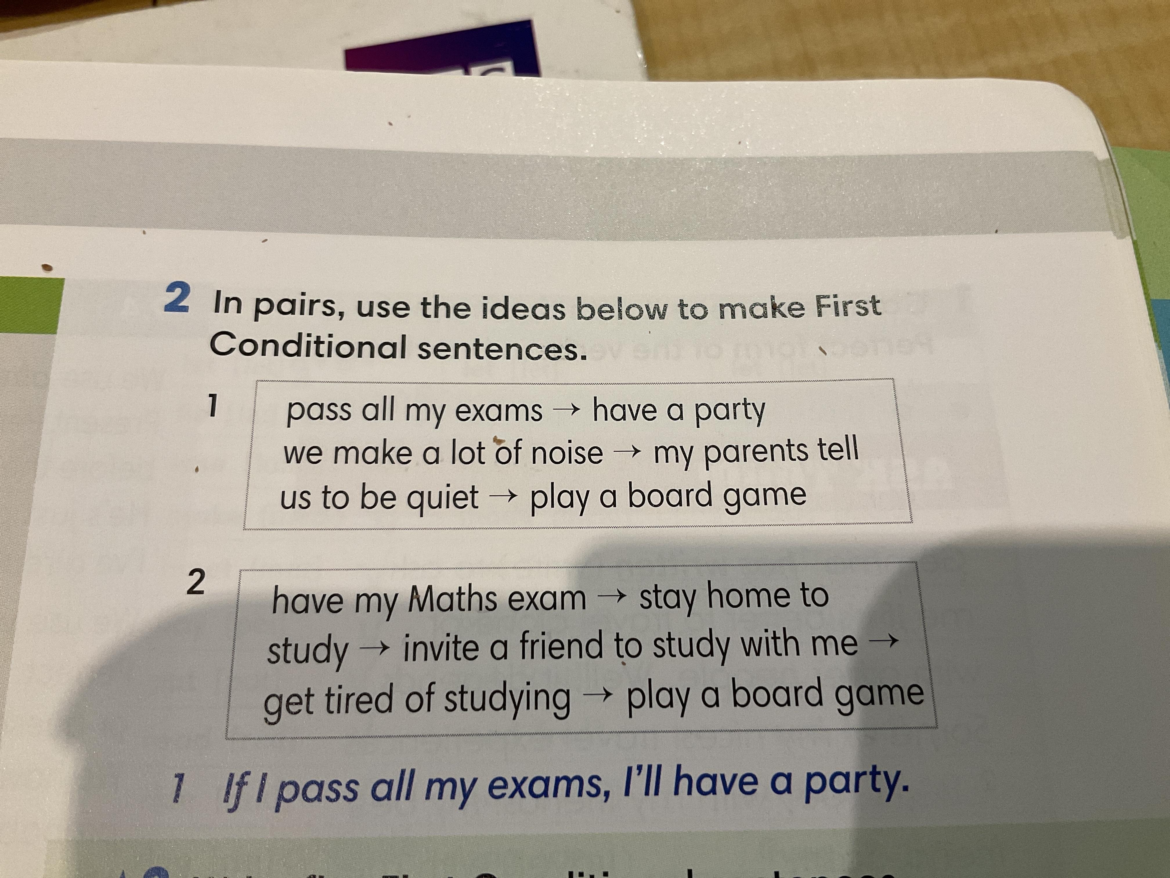 if I have my maths exam I will stay at home to study andi invite friend to study with me. if we get tired of studying wewill play a board game