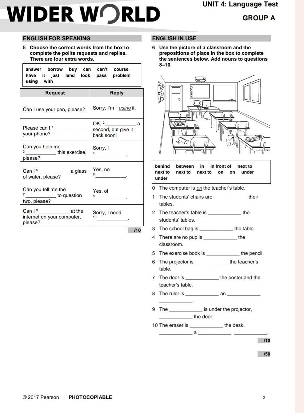 9. teacher’s table is under, next to
