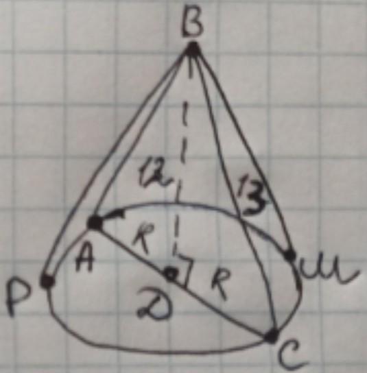 Теорема Піфагора: R=√(L²-H²)=√(13²-12²)=5
