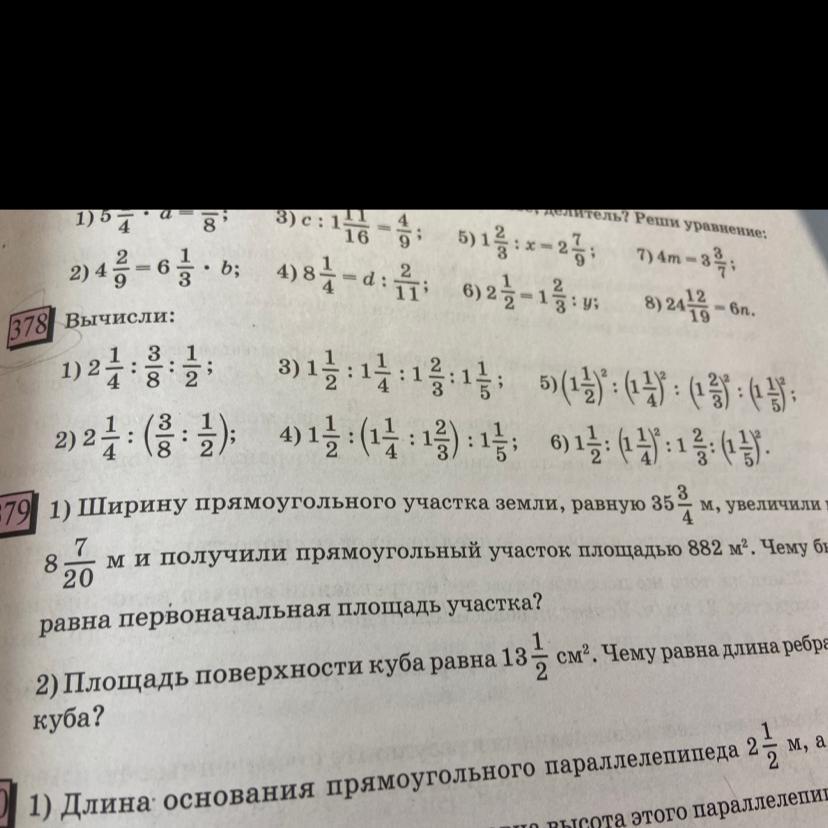 2) 2 1/4:(3/8:1/2)=(первое действие в скобках) 3/8:1/2=3/8×2=3×2/8=(сокрощаем) 3×1/4=3/4