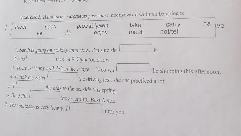 1. Sarah is going on holiday tomorrow. I'm sure she will enjoy it.