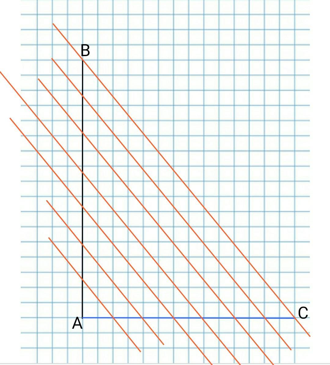Соединяем СВ и проводим паралельно СВ прямые каждый сантиметр отрезка АС.