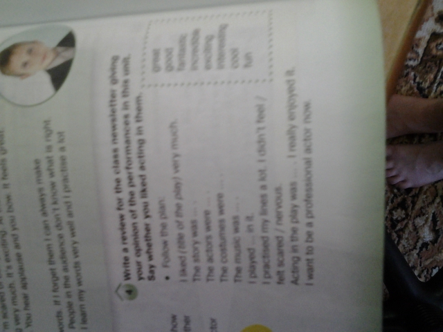 Помогите пожалуйста, перевести на русский язык вот это только правельно:( Write a review for the class newsletter giving your opinion of the performances in this unit. Say whether you liked acting in them.)
