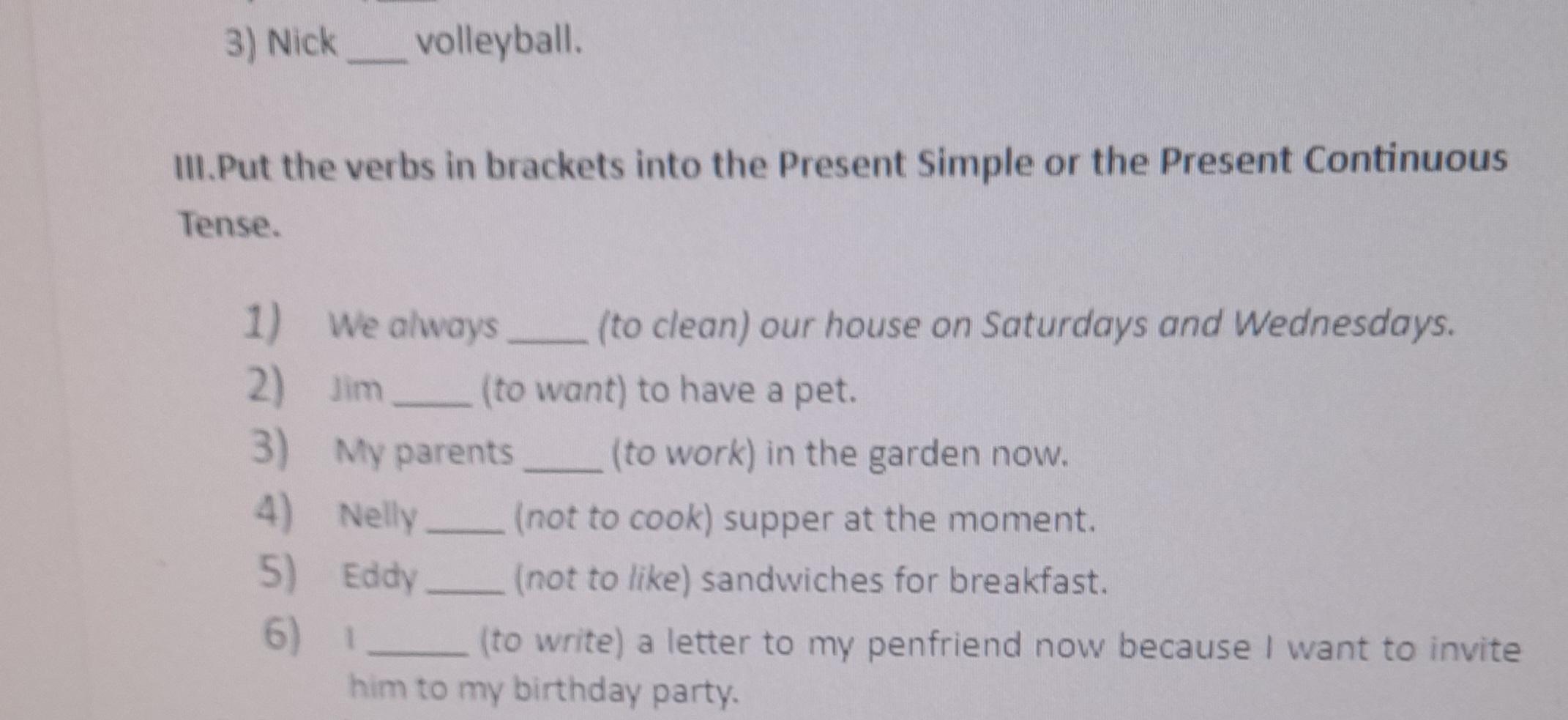 6. I am writing a letter to my penfriend now because I want to invite him to my birthday party.