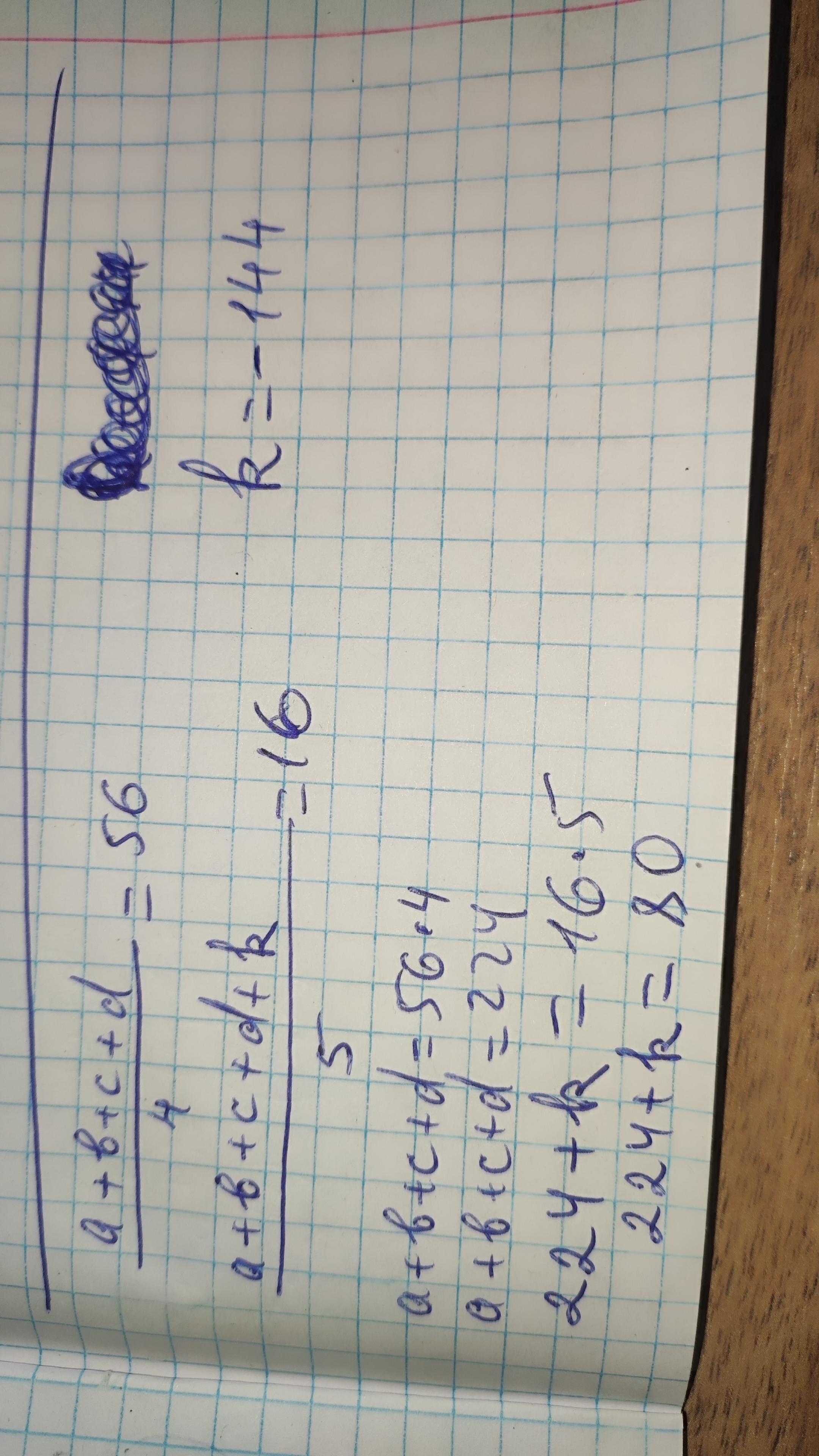 среднее арифметическое четырех чисел равно 56. после добавления к ним еще одного числа среднее арифметическое стало 16. найдите добавленное число.