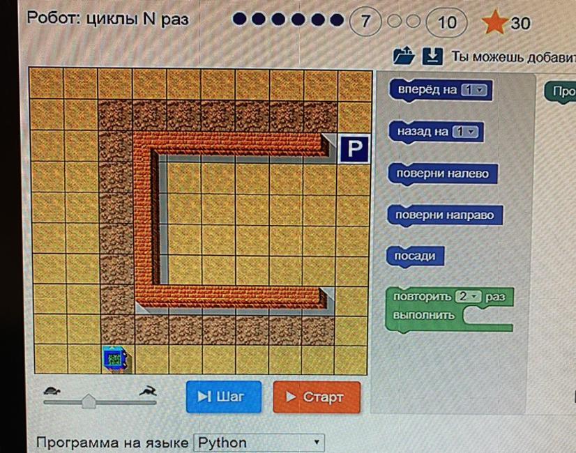 - поставим робота так, чтобы было удобно сажать грядки пользуясь циклами