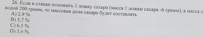 w(сахара) = m( сахара)/m * 100% = 6/206 * 100% = 2,9%