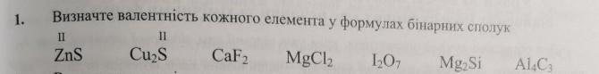 ZnS ; Cu2S ; CaF2 ; MgCl2 ; I2O7 ;