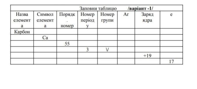СРОЧНО РЕШИТЕ, ДАМ 100 БАЛОВ. Назва елемент a Карбон Заповни таблицю Символ Порядк | Номер | Номер елемент перiод групи a номер.